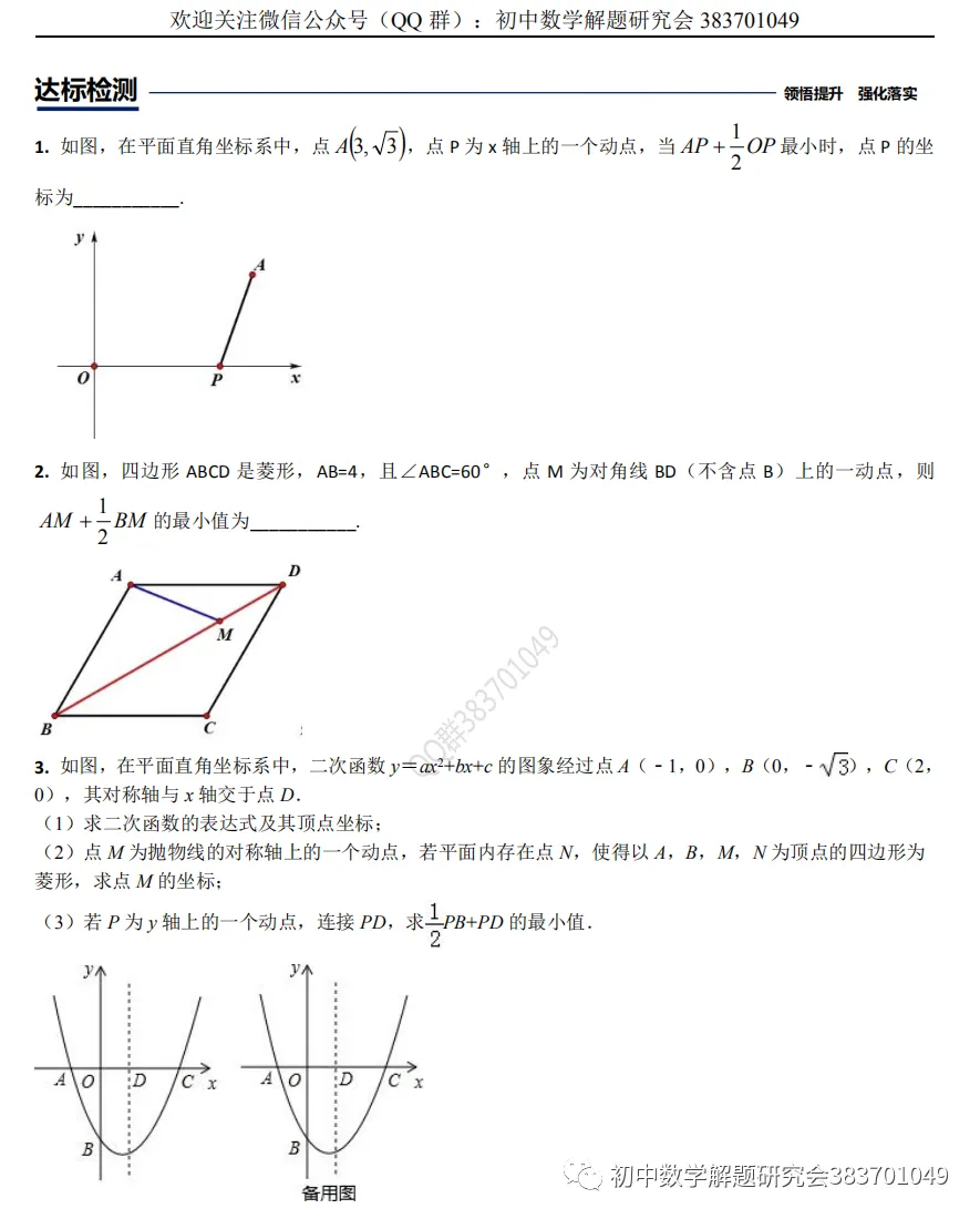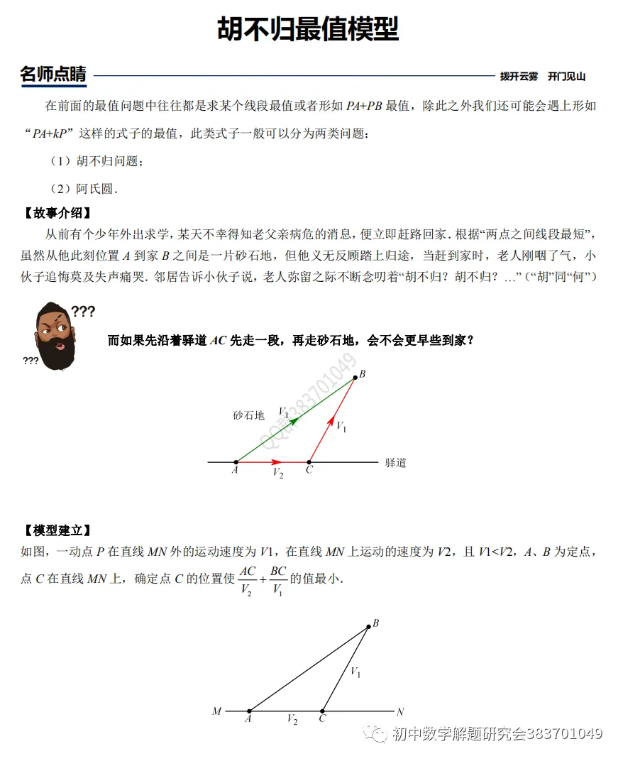 347.最新:阿氏圆与胡不归问题(word分享)
