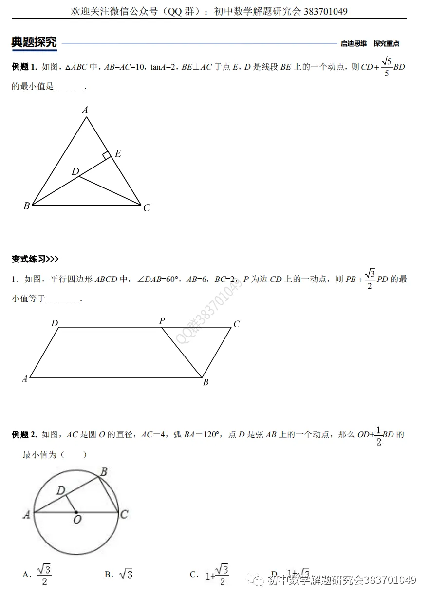 295.将军饮马等8类最值问题(word分享)