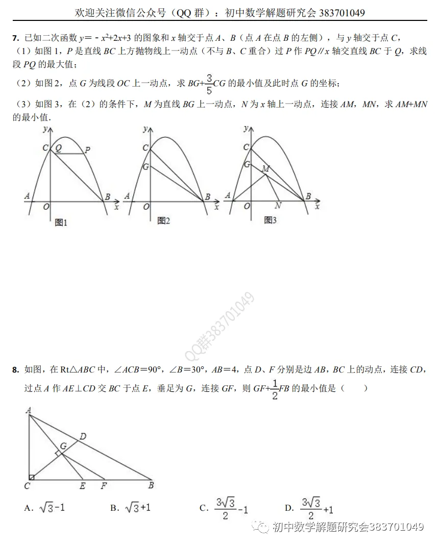 “初中数学解题研究会”公众号