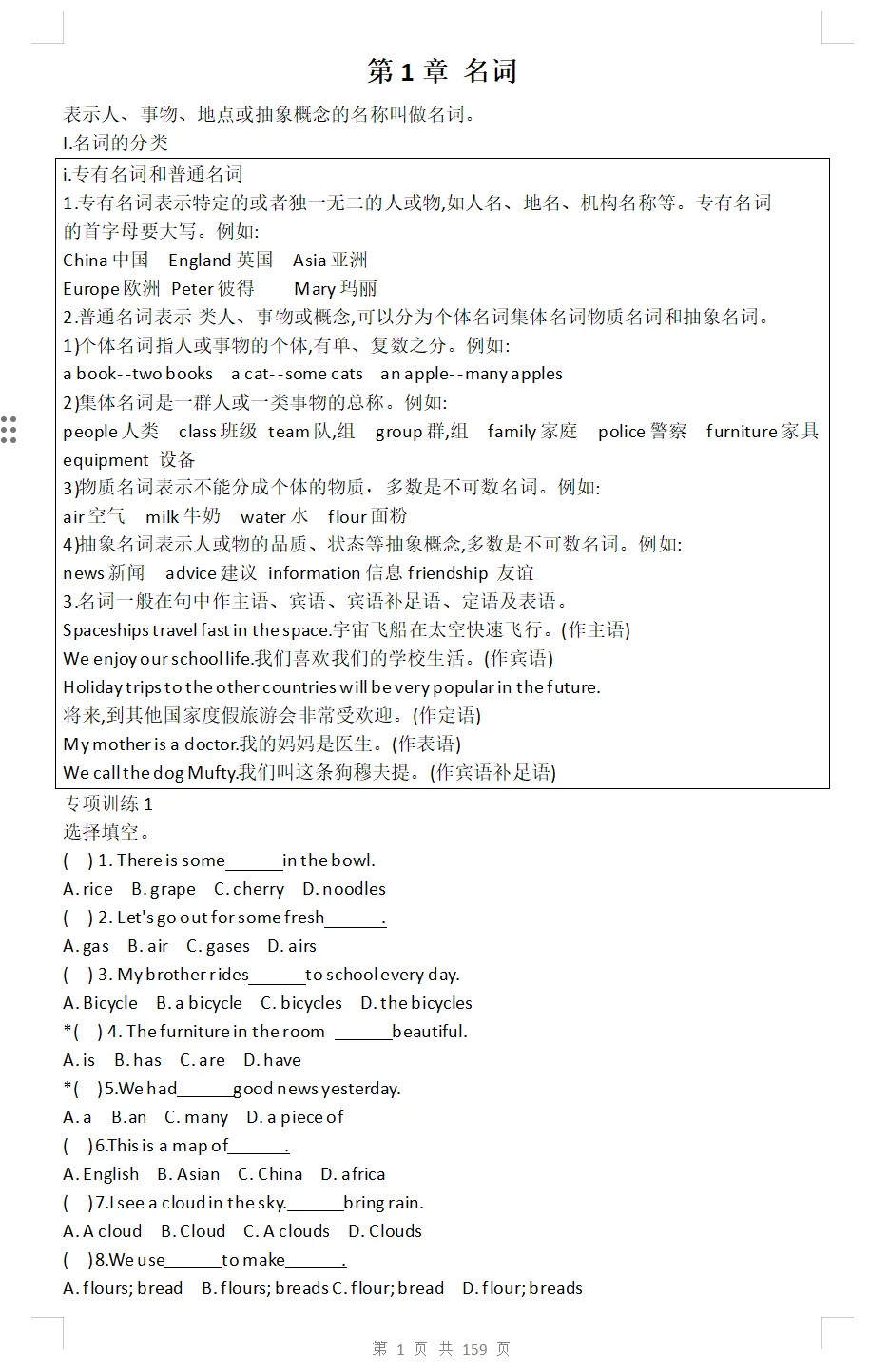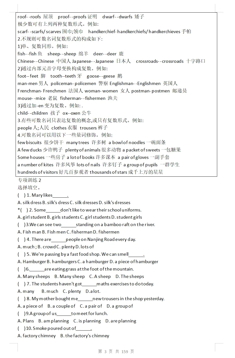 小学英语《语法专练》WORD电子版,含答案,可打印(电子版可下载)