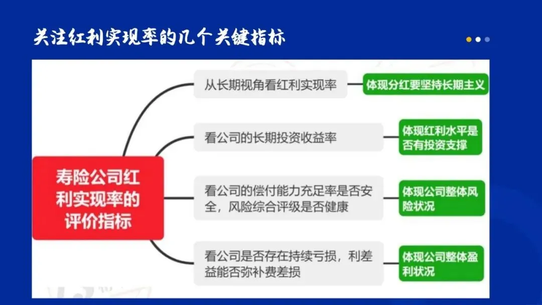 先给大家科普一个关键概念:红利实现率,简单来说就是保险公司实际派发的红利,和产品说明书中演示红利的比例。这个比例越高,说明保险公司的分红兑现能力越强,投保人的实际收益越有保障。