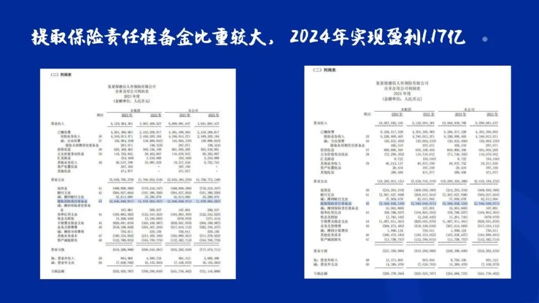 公司的整体盈利状况直接影响分红能力,如果公司持续亏损,可能会用利差益弥补费差损,进而影响分红的稳定性。复星保德信2024年实现净利润1.17亿元,虽然此前有过亏损,但近年来经营状况持续改善,尤其是2024年的盈利,标志着其经营进入稳健发展阶段,也为分红险的持续分红提供了盈利支撑。