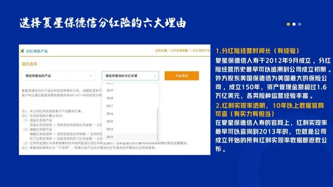 作为行业内仅有的五家披露十年以上分红实现率的保险公司之一,复星保德信从2013年起的所有分红数据均在官网公开,客户可随时查询。这种透明化的披露,不仅体现了公司的实力自信,也让投保人能够清晰掌握收益情况,放心投保。