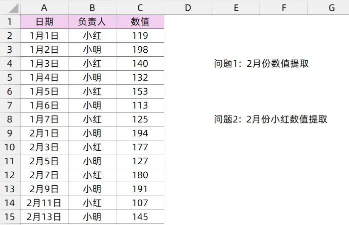 问题1: 2月份数值提取
