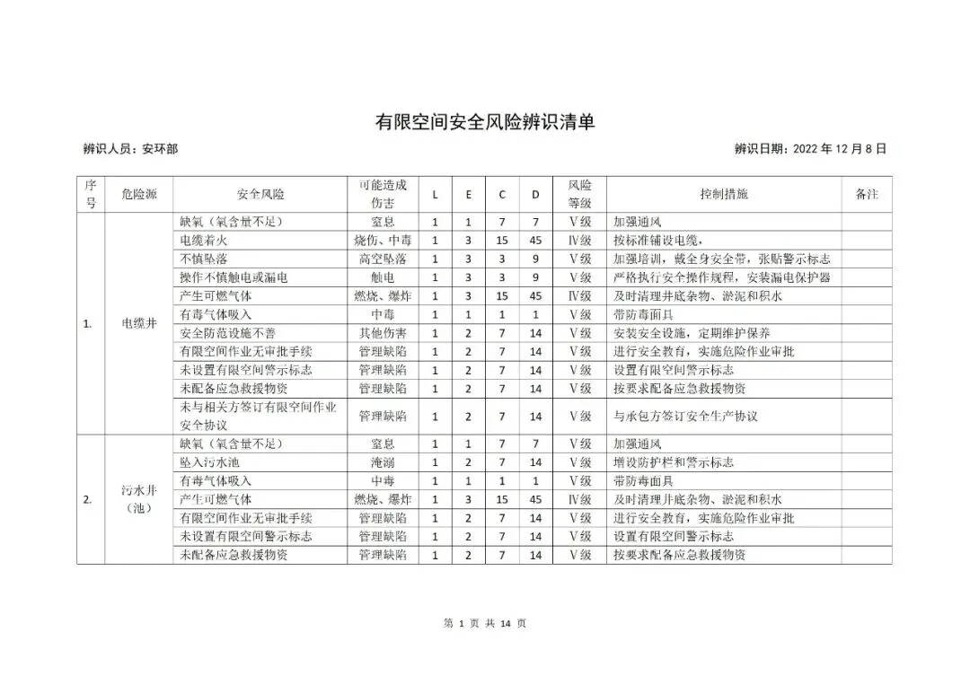 >【Word可下载编辑】20种“有限空间”安全风险辨识清单
