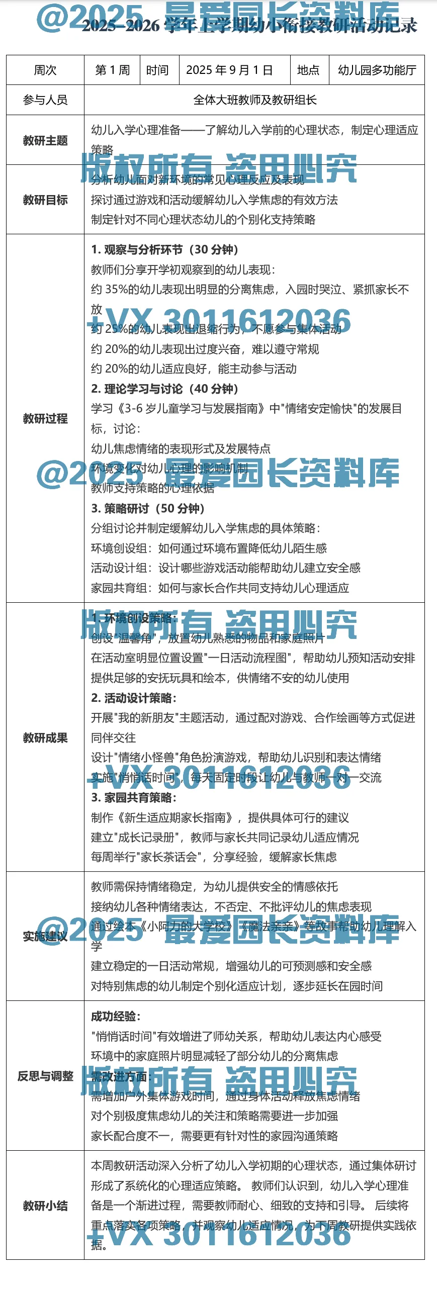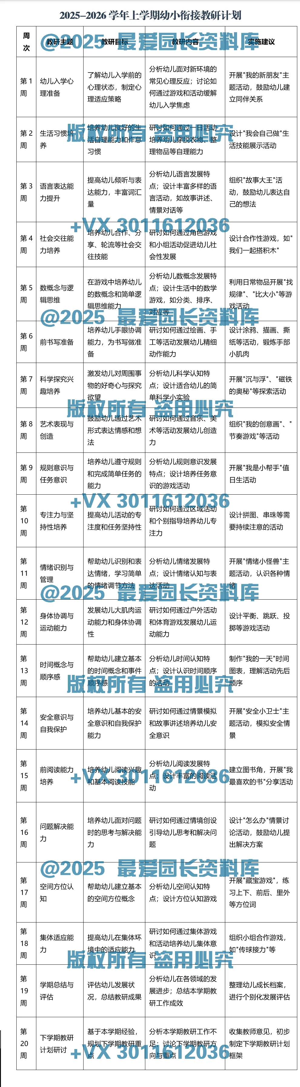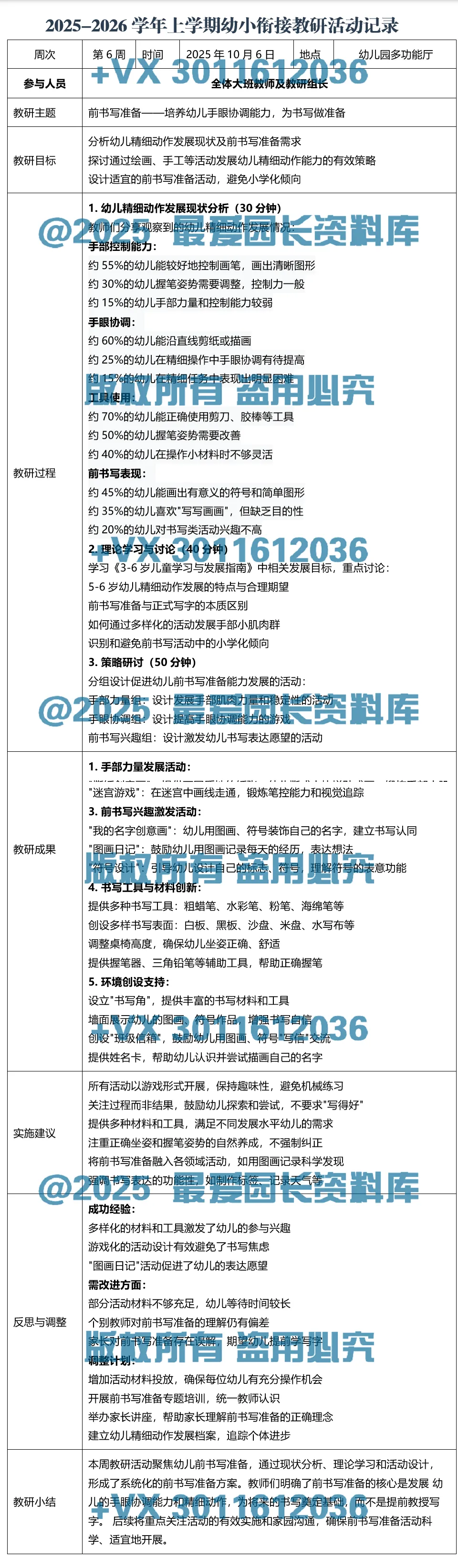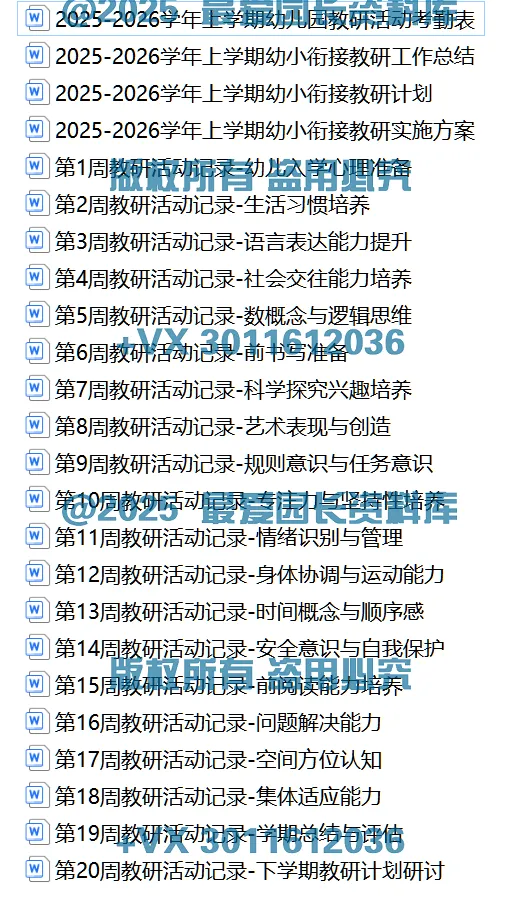 >【Word电子版】幼儿园幼小衔接教研记录共20周