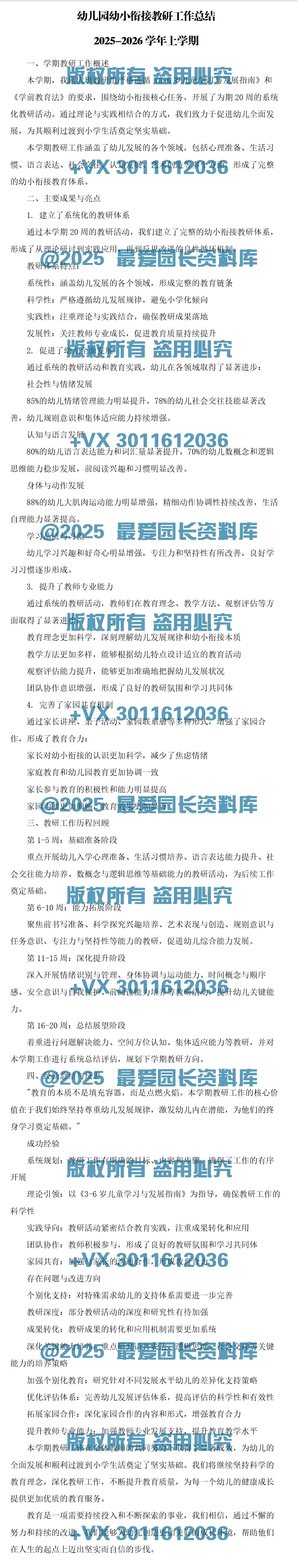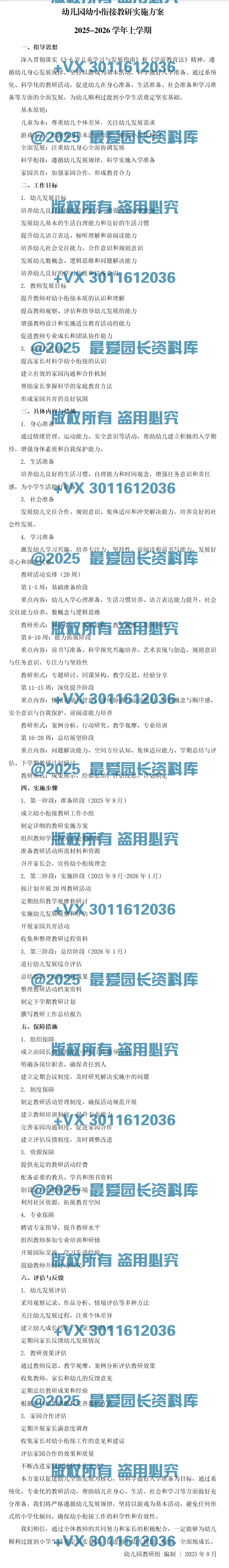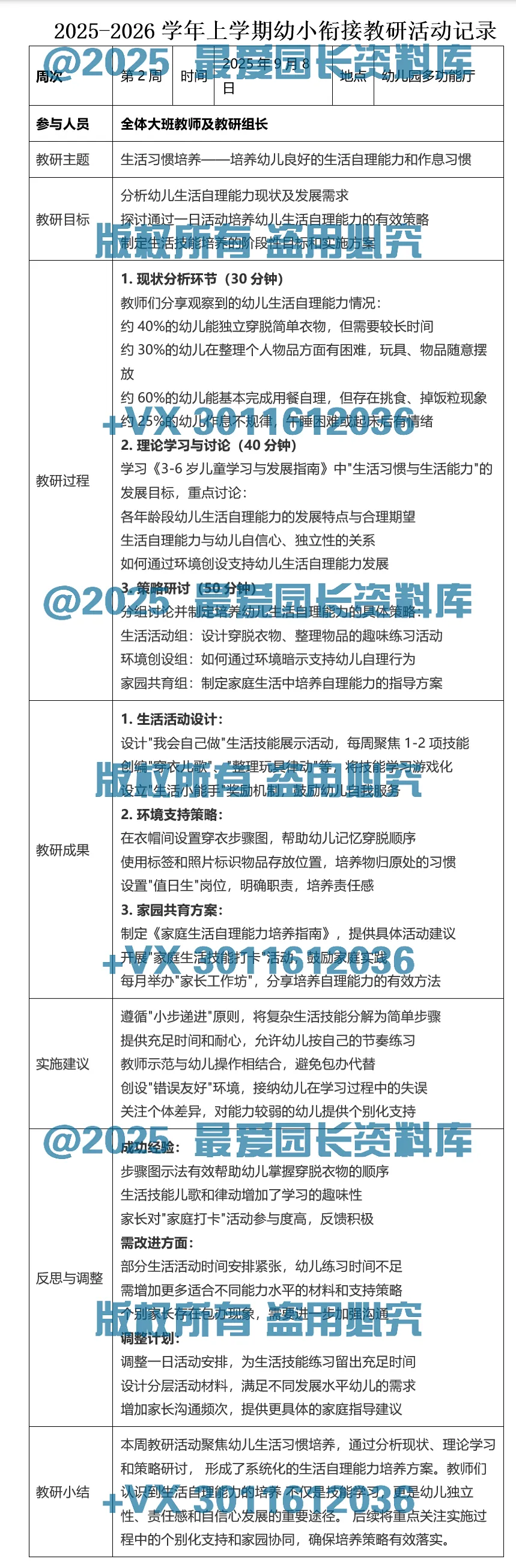 >【Word电子版】幼儿园幼小衔接教研记录共20周