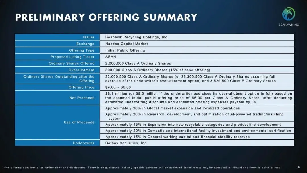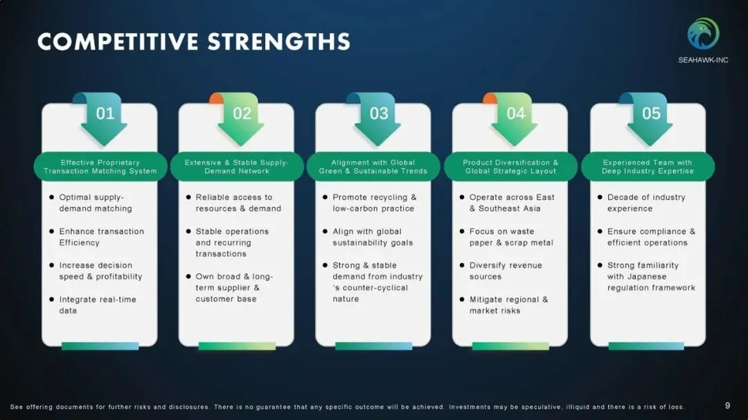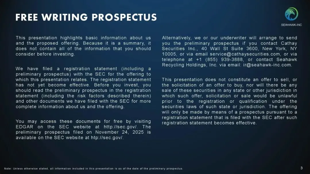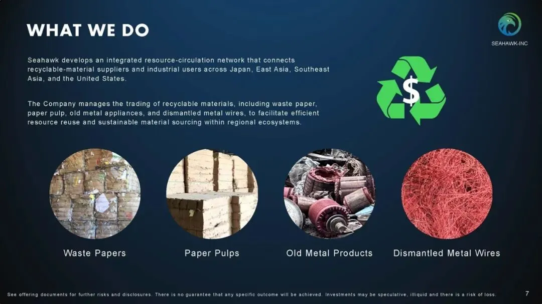 Seahawk Recycling是一家纸张和废金属回收服务的国际再生资源贸易商,从事再生资源的贸易业务。该公司利用其信息匹配系统和物流协调能力,连接全球(特别是日本、美国、东亚及东南亚)的供应商和客户,促进可再生资源的循环利用。截至2025年9月30日的六个月,Seahawk Recycling营收5062万美元,上年同期3315万美元,相应的净利润分别为19万美元、71万美元。
