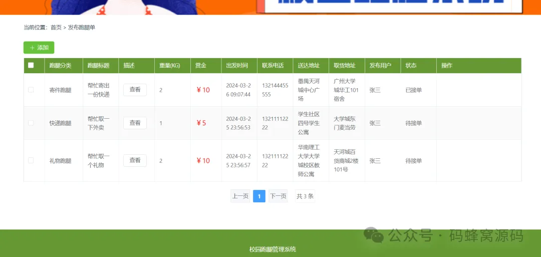 本课程演示的是一款基于Python校园跑腿管理系统设计与实现,主要针对计算机相关专业的正在做毕设的学生与需要项目实战练习的 Python学习者。