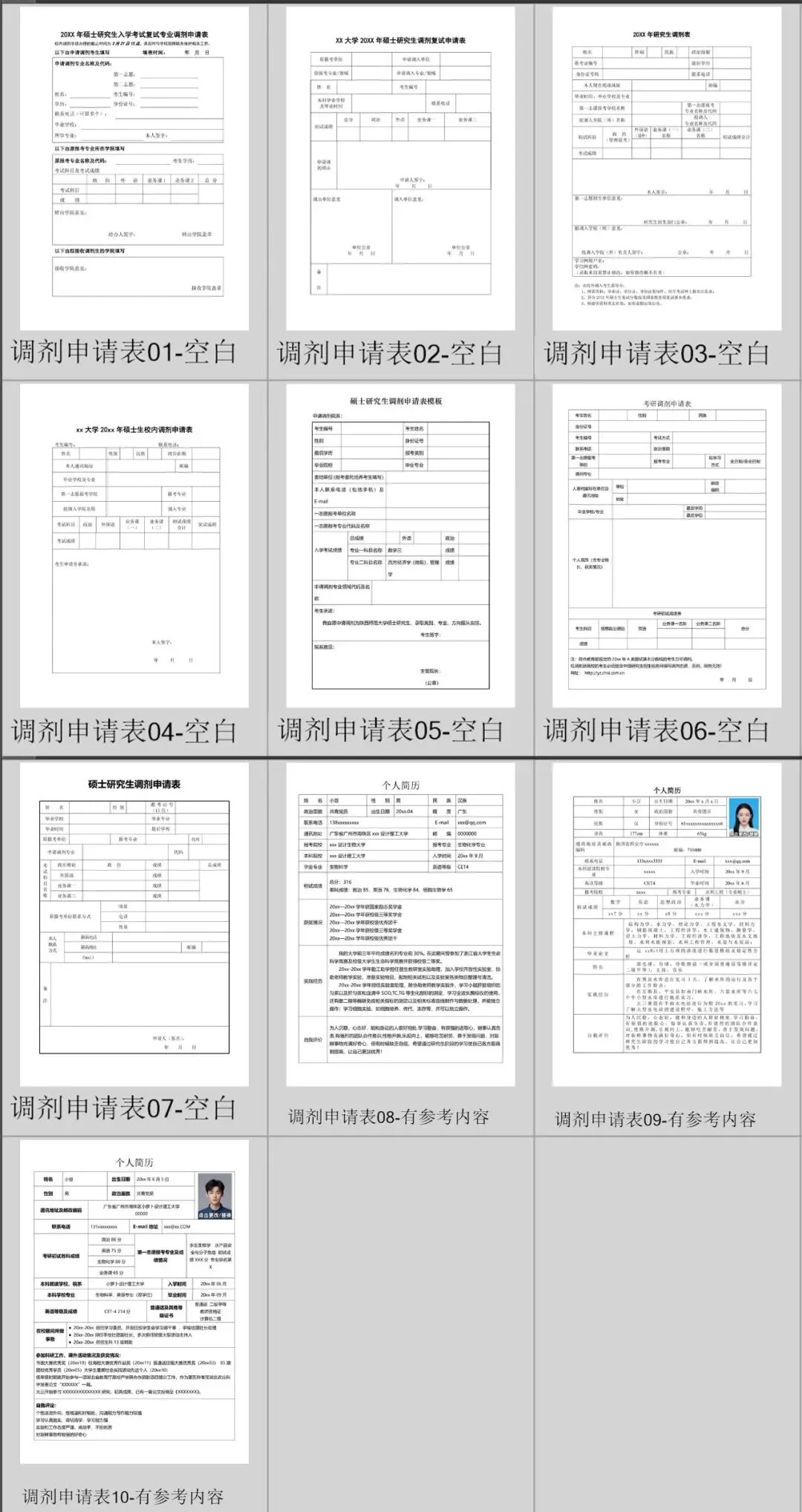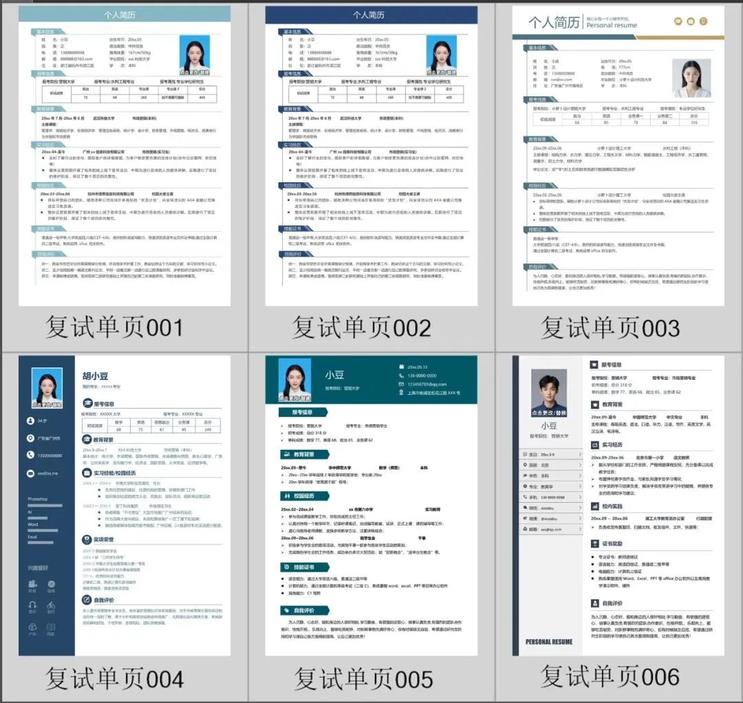 本文主要分享【研究生复试简历模板|包含单页简历和四页简历以及调剂申请表】领取方式一、