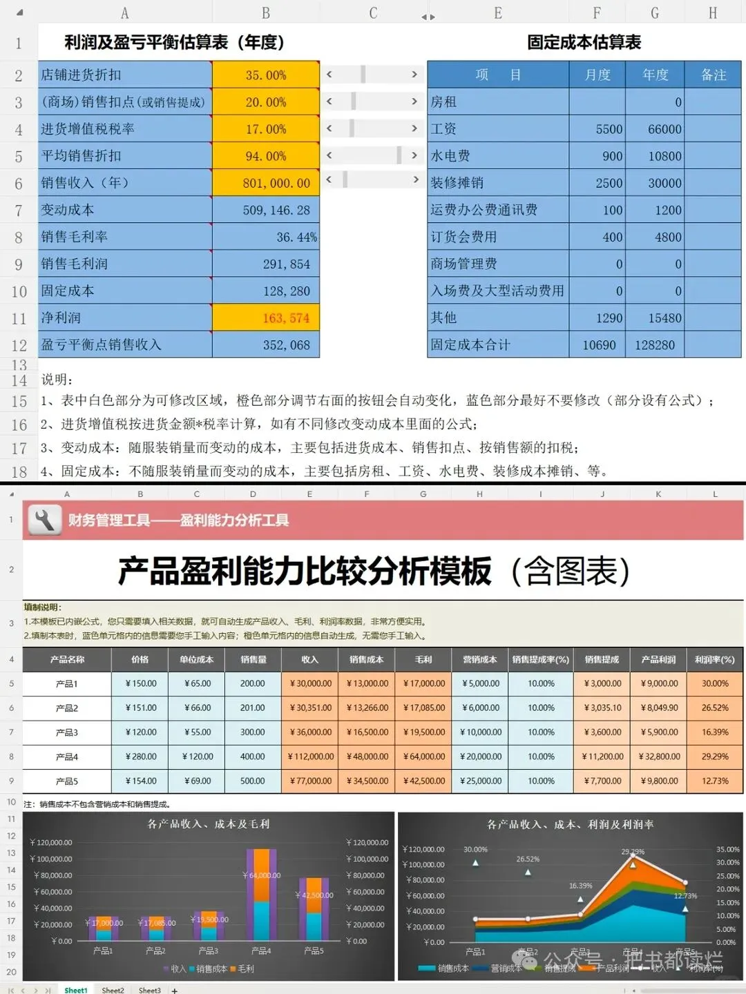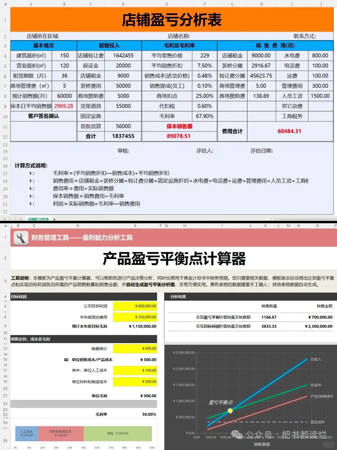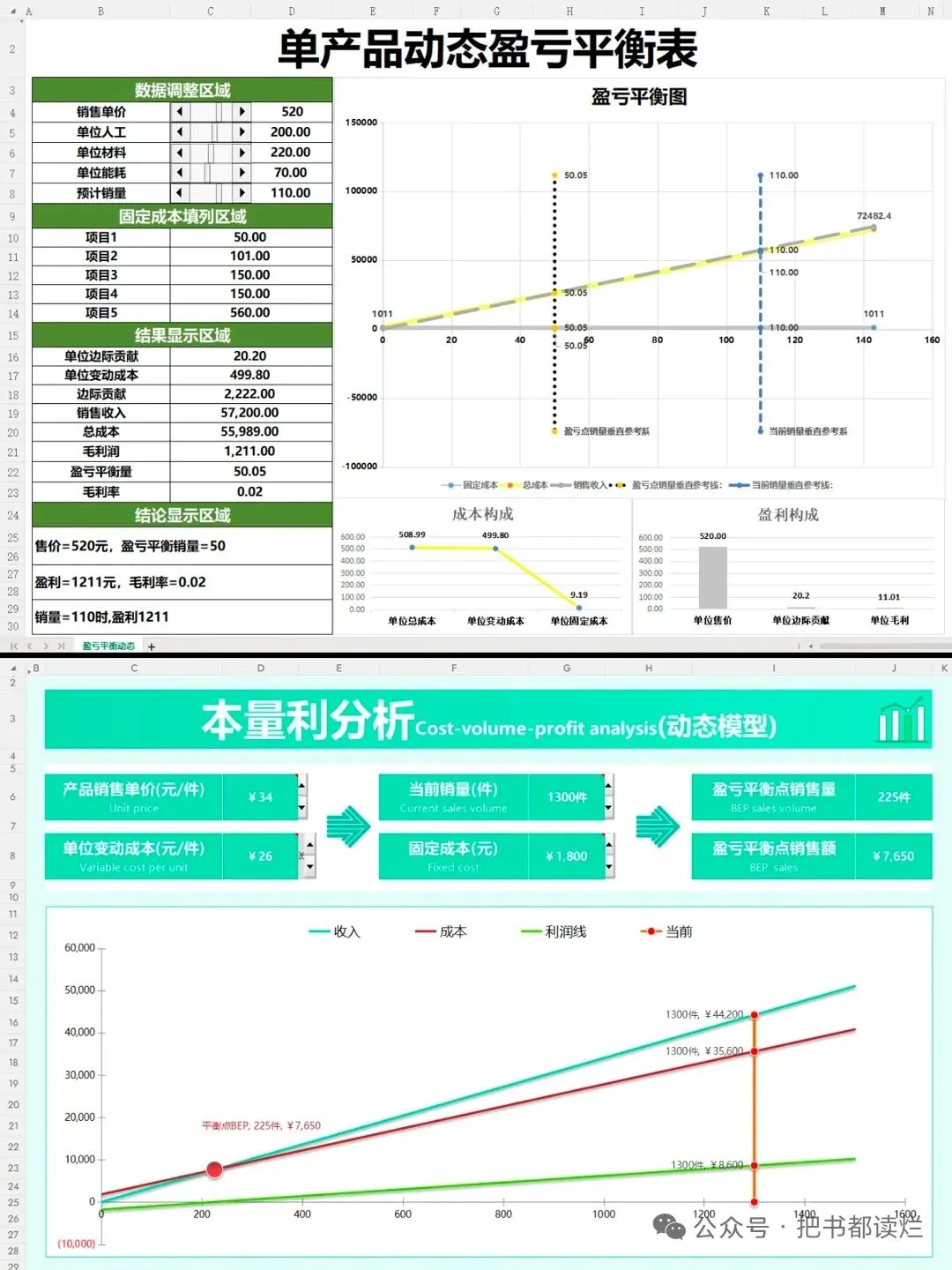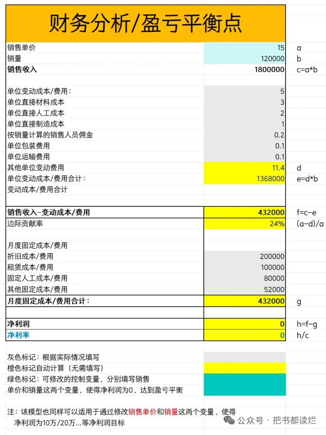 >毛利率和盈亏平衡点(Excel自动计算表)
