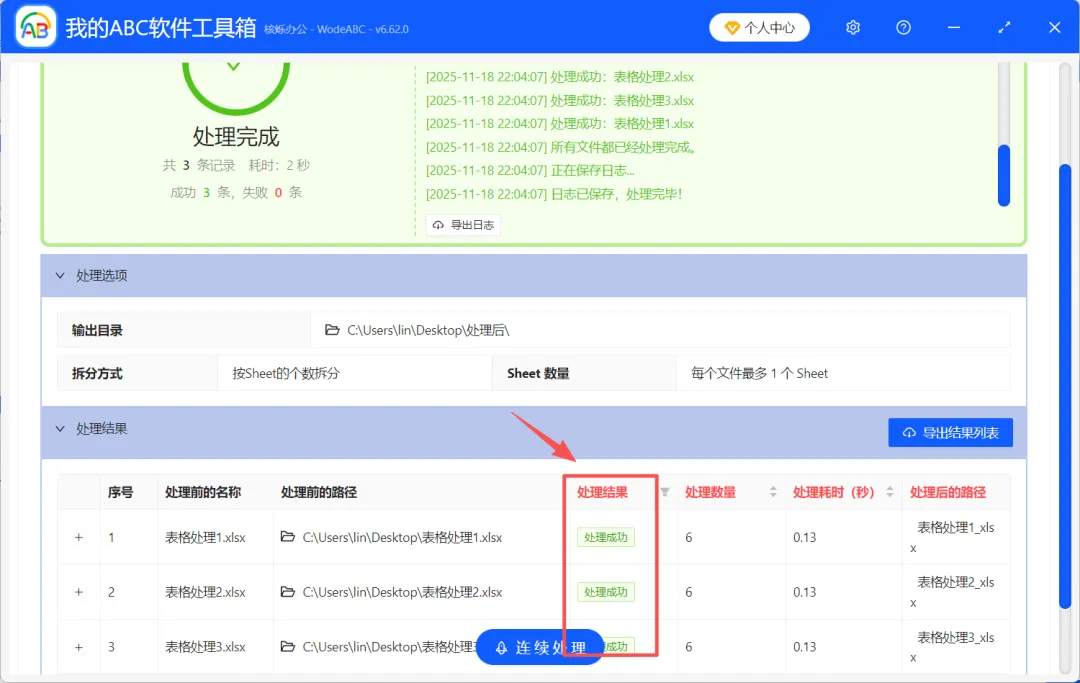 这些看似简单却重复繁琐的“表格拆分”工作,占据了大量宝贵时间。在「我的ABC软件工具箱」里的按Sheet批量拆分Excel功能,就是为终结这种重复劳动而生的。