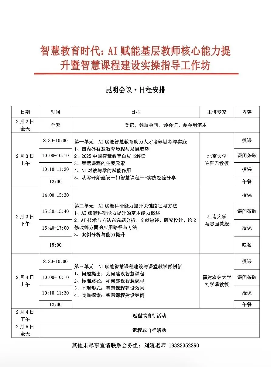 1、【2.2-2.5昆明】智慧教育时代:AI 赋能基层教师核心能力提升暨智慧课程建设实操指导工作坊