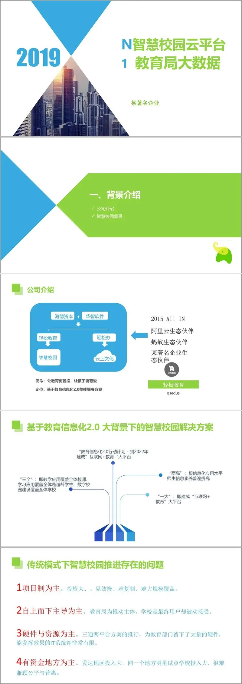 智慧校园云平台教育局大数据解决方案,是在教育信息化2.0时代背景下,由某知名企业联合阿里云共同推出的一套全方位、全链路的教育数字化整体方案。该方案以“三全两高一大”为目标,即教学应用覆盖全体教师、学习应用覆盖全体适龄学生、数字校园建设覆盖全体学校,实现师生信息素养的普遍提高,并最终建成“互联网+教育”大平台。