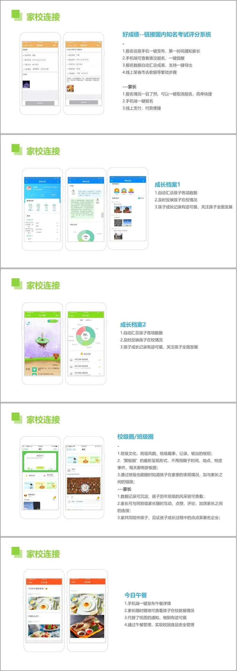 在后续可接入模块中,智慧课堂支持多终端互动、个性化教学与资源云管理;智能硬件如晨检机器人、人脸识别门禁、视频监控、智能手环等,进一步强化校园安全与学生健康管理。校园网络方案则通过智能通讯中心解决信号覆盖与设备接入难题,保障各类应用稳定运行。