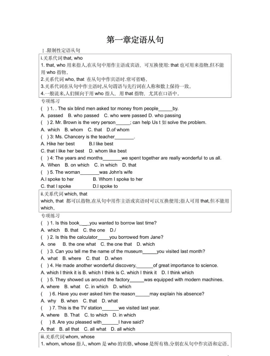 今天给大家分享的是高中英语《语法专练》Word文档,含答案,可下载,打印