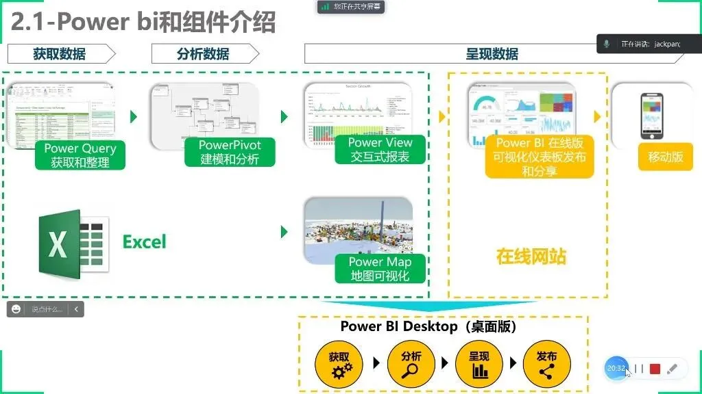 核心组件:由Power Query(数据获取)、Power Pivot(建模分析)、Power View(交互报表)三大模块组成,与Excel功能对应但更强大