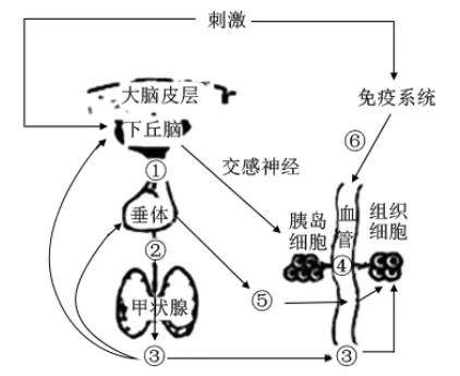 下图为某患者体内一些生理过程的示意图,其中①~⑥表示体内的激素或免疫物质。请据图回答以下问题: