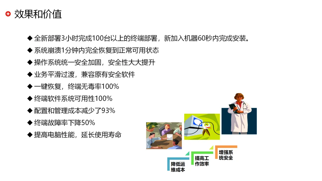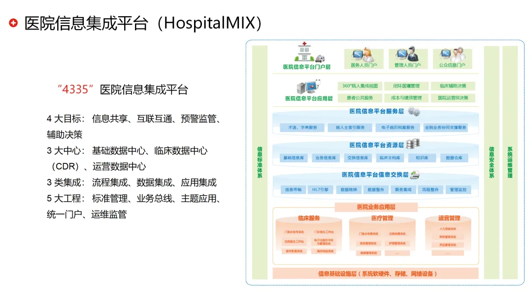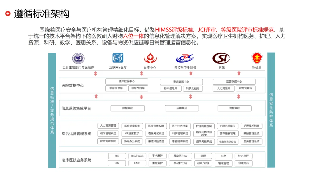 本方案立足于“大健康”理念,以智慧医院建设为核心,构建覆盖全院、融合分级诊疗、服务区域协同的一体化信息化平台。方案通过顶层设计与场景化应用相结合,推动医院从传统管理模式向“以患者为中心、以数据为驱动”的智慧化运营模式转型,全面提升医疗服务质量、精细化管理水平与患者就医体验。方案以“高效诊疗、智慧医疗、精细管理、信息便民”为核心目标,遵循HIMSS、JCI等行业标准,构建“端—中台—数据”三层架构,并围绕“4116”总体规划,推动医疗管理、临床信息、运营管理、移动物联、医疗协作与对外服务六大应用体系建设。通过建设以电子病历为核心的临床信息平台(CIS)、集成化的医院信息平台(HospitalMIX)以及支持5G的移动物联平台,实现医疗流程闭环、数据互联互通与业务高效协同。平台支持从院内诊疗到医联体协作、从临床业务到运营管理的全场景覆盖。依托数据中台与人工智能平台,整合全院多源数据,构建临床数据中心(CDR)与运营数据中心,支撑BI分析、AI辅助诊断与可视化运营管控。区块链云胶片、全栈影像平台等创新应用,进一步提升数据安全性与业务智能化水平。推出“4S”患者服务、智能医废管理、云桌面办公、智慧导诊等场景解决方案,覆盖门诊、住院、后勤、行政管理等多个环节,实现流程优化、效率提升与资源精细管控。方案支持与区域健康平台、分级诊疗体系对接,具备良好的扩展性与兼容性,助力医院构建开放、协同、可持续的智慧健康服务生态,最终实现医疗资源优化配置与全民健康管理水平提升。