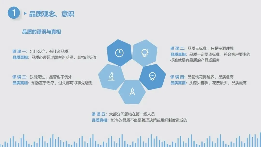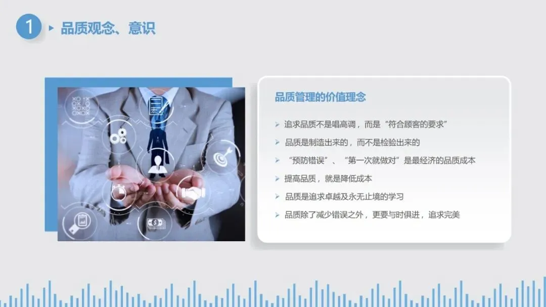 首先要建立对质量的正确认识。许多人认为“高价必有好货”、“质量管理出错在所难免”,这是一种认识上的误区。质量不是虚无缥缈的理想,它必须满足顾客的具体要求,甚至超过顾客的期望;而且,质量是做出来的,又不是最后的检验来把关的,“一次做对”是性价比最高的做法。质量管理也不仅仅是一个人的事情,它需要高层领导的关注,建立完善的质量管理体系,以及全体员工的质量意识。