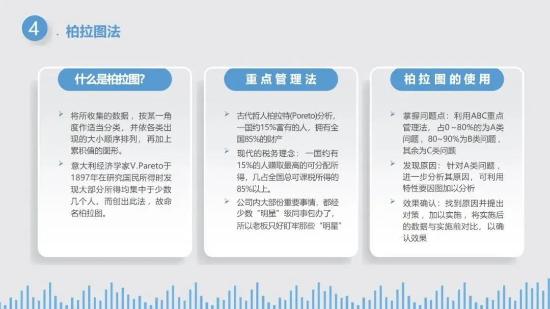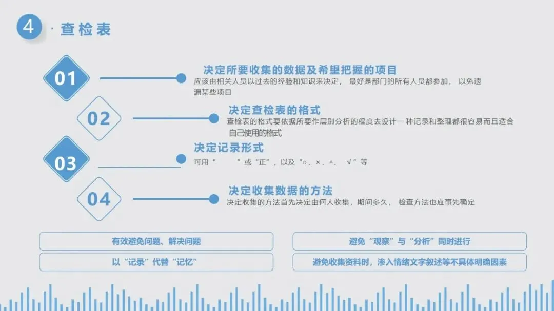 最后,得好好利用工具。查检表可以简单地记录缺陷和检查项目,防止遗漏;柏拉图可以帮助你找到80%的关键问题,这样你就可以抓住重点了;特征原因图(鱼骨图)可以理清问题的根源,便于对症下药。这些工具很容易使用,可以帮助你少走很多弯路。
