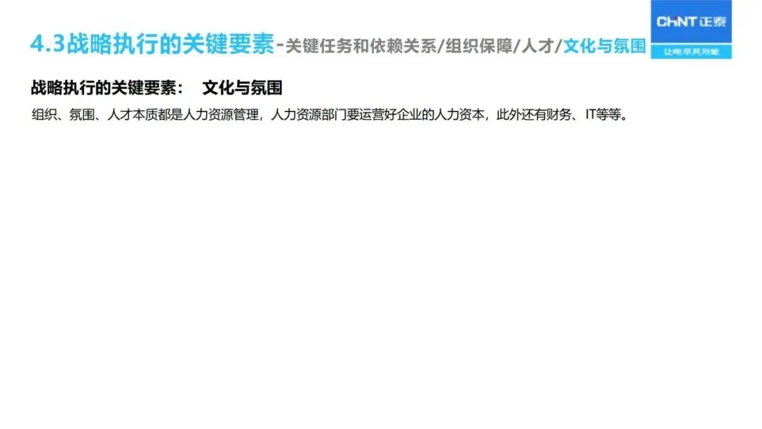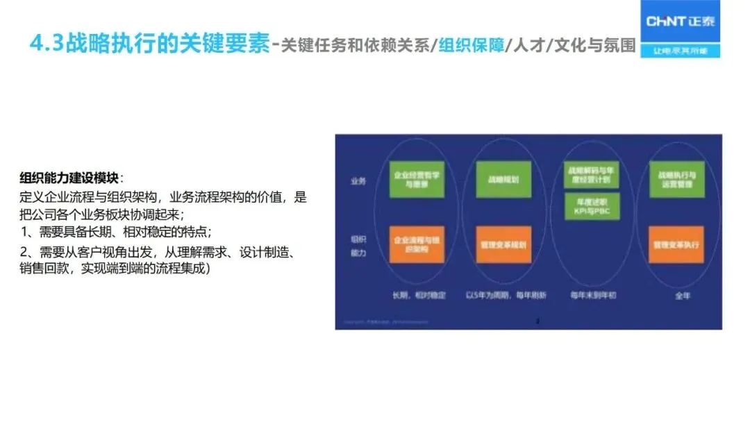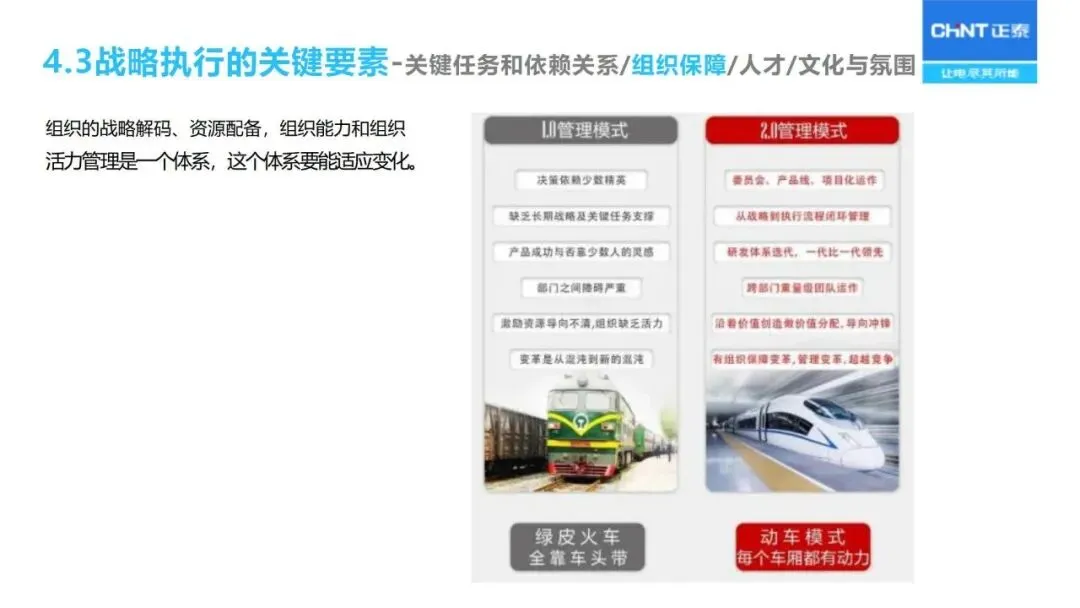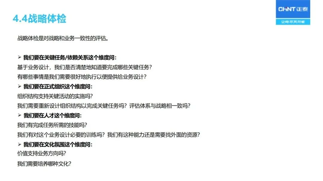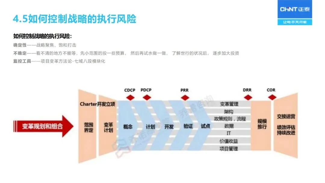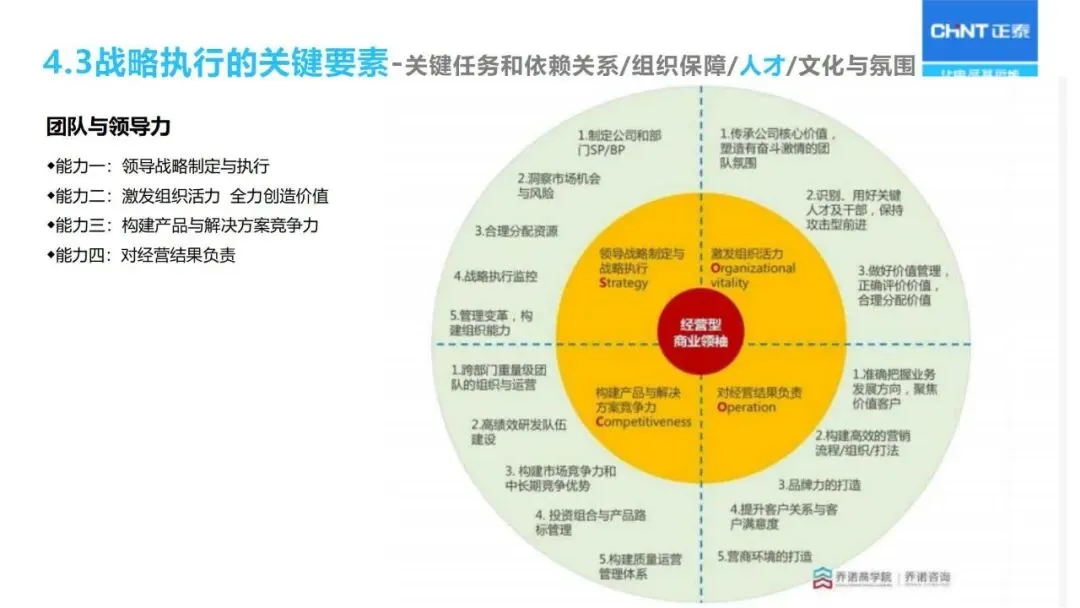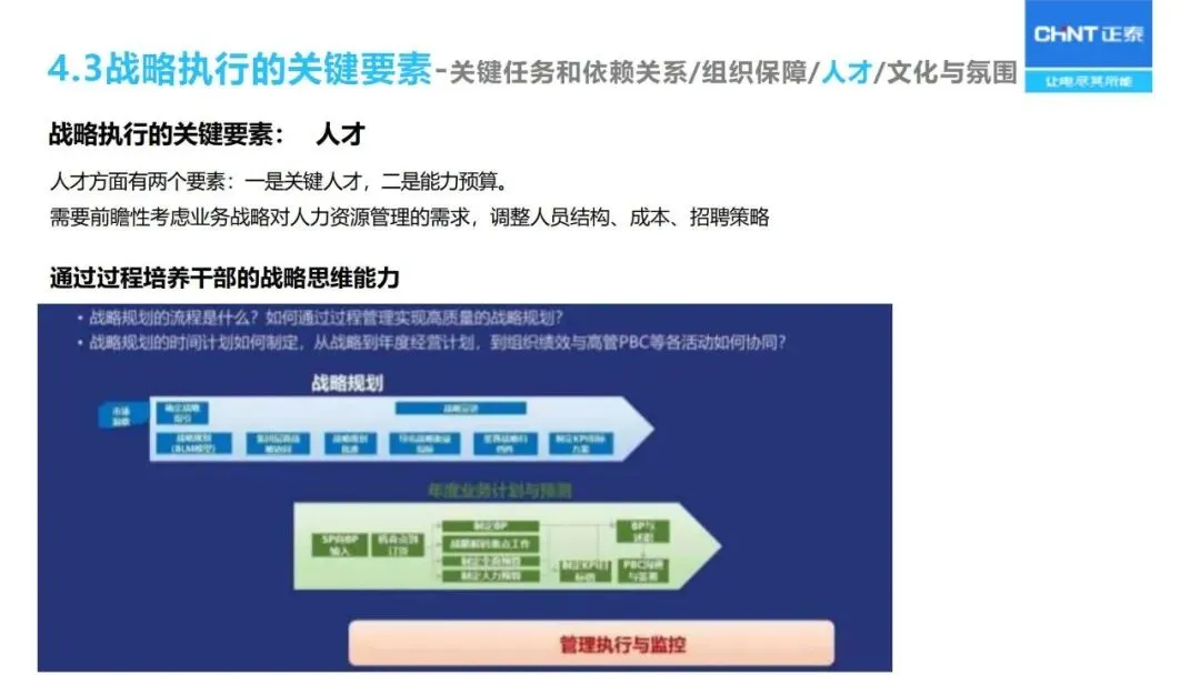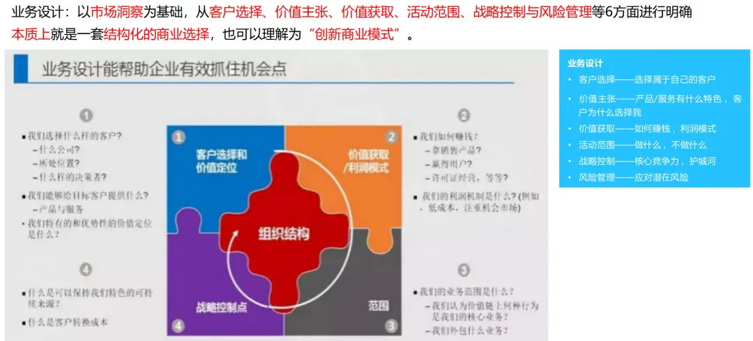“三驾马车”为战略实施和监督保驾护航:人力资源重点关注核心人才的储备与能力建设;财务预算优化资源配置;流程改革优化从产品开发、销售线索到销售回款的整个过程;对关键任务的推进、组织的适宜性、人员的能力等进行定期的“战略体检”,对实施战略进行动态的调整。