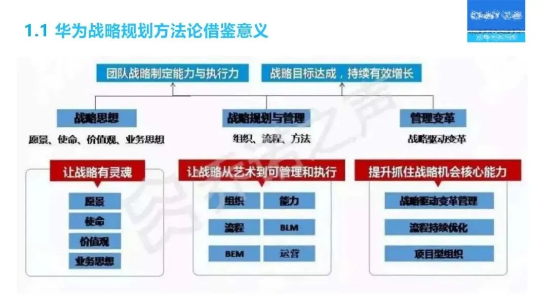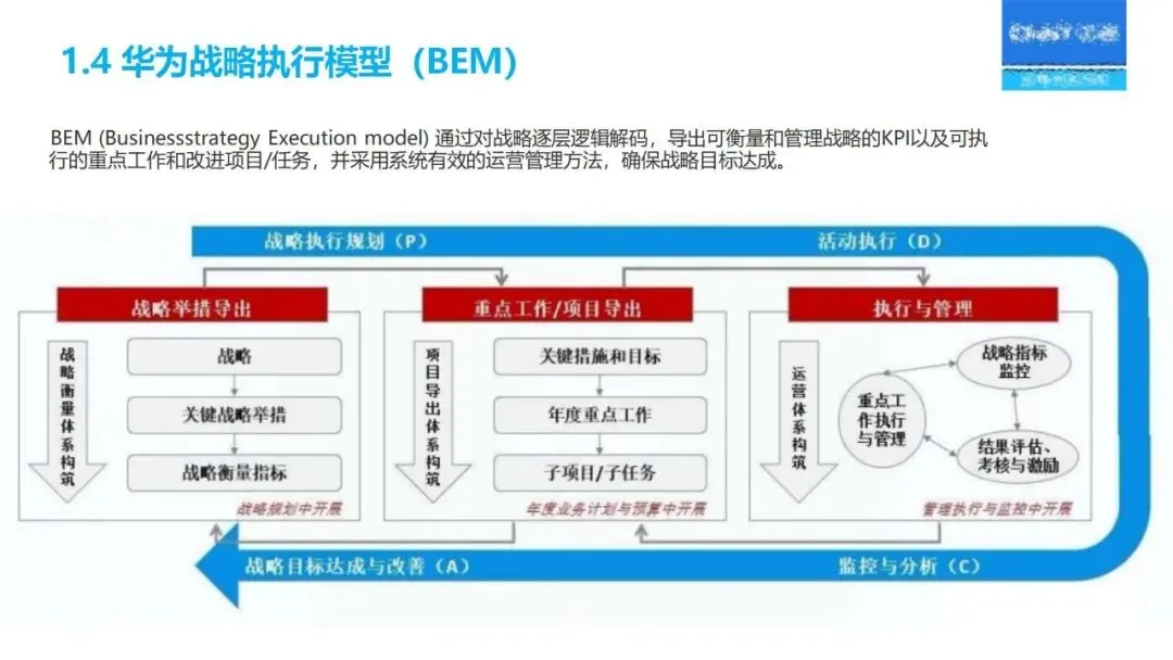 华为的“十五五”战略规划方法,以 DSTE为核心,结合 BLM和 BEM,实现了“制订—解码—执行—评价”的闭环式管理,使得该方法更具科学性,更易于实施。