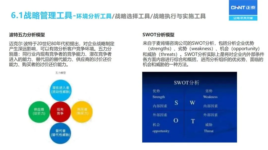 战略制定阶段以 BLM模式为主:首先发现差距,即“业绩差距”和“机会差距”,前者是应该完成而没有完成的,后者是希望开拓的新领域;然后运用“五看”进行市场调研,了解行业趋势,了解市场客户,了解竞争对手,了解自身情况,了解可能的机遇,重点关注 ICT基础架构、智能终端这两个核心产业;结合国家“十五五”科技创新的发展方向,确定“打造一个万物互联、智慧的世界”这一企业发展的战略目标,通过顾客选择、价值定位等6个维度,最终确定企业的发展模式,制定企业未来3~5年的发展战略计划。