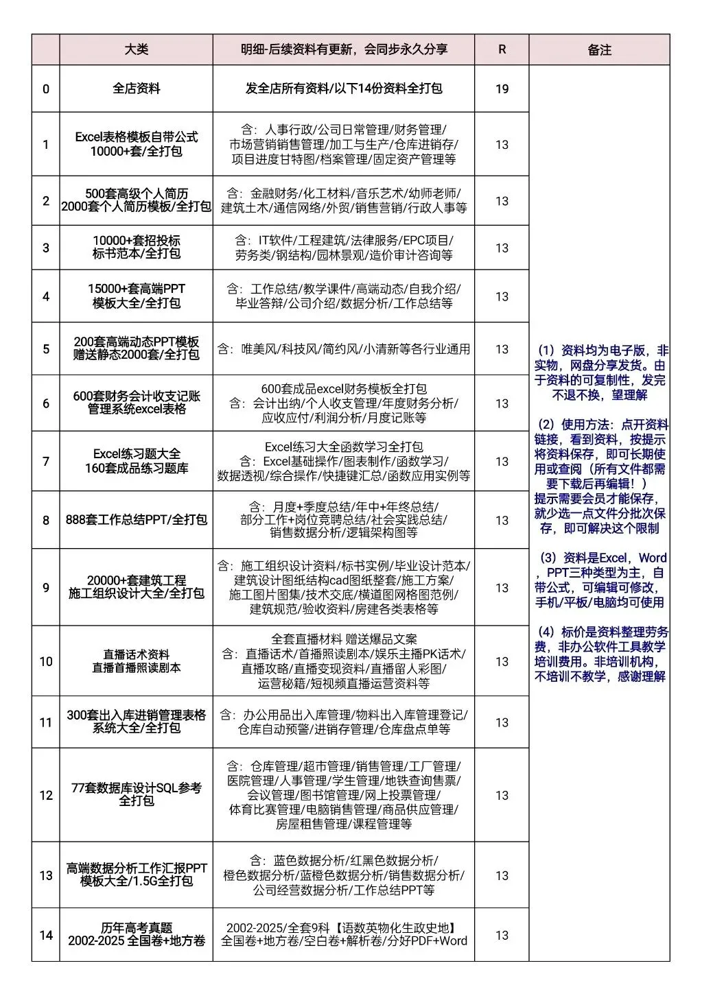 提高效率,财务记账excel,简历,标书,PPT,直播话术,高考真题,excel练习题,建筑施工组织设计,等各类工作和学习excel,word,ppt模板