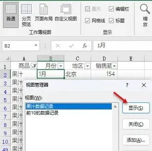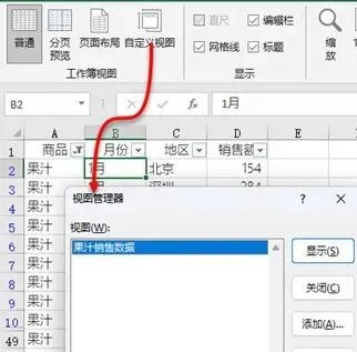 处理多维度数据筛选时,自定义视图能帮你告别重复设置的麻烦,步骤简单易懂:- 先在工作表中完成目标筛选(比如筛选“1月北京地区果汁销售额”“前10条高销量数据”等),同时调整好合适的行高列宽、显示隐藏无关列等;