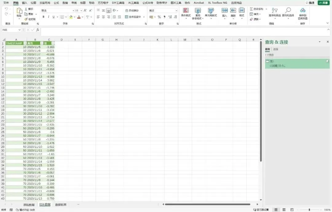 (5)点击“关闭并上载”,生成包含三列的新表:日期、深度、温度。该格式即为适用于绘制等值线图的标准XYZ数据结构。