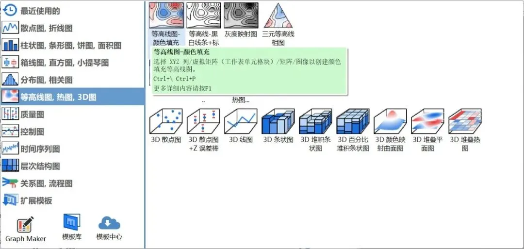 (3)在菜单栏中选择:绘图、“等高线图、热图、3D图”、等高线图(颜色填充),即可生成土壤温度的时间–深度等值线图。
