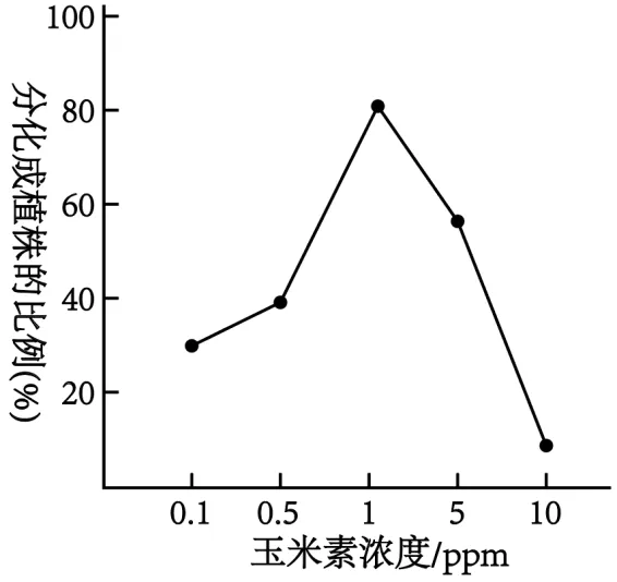 D. 玉米素浓度超过1ppm会抑制愈伤组织再分化