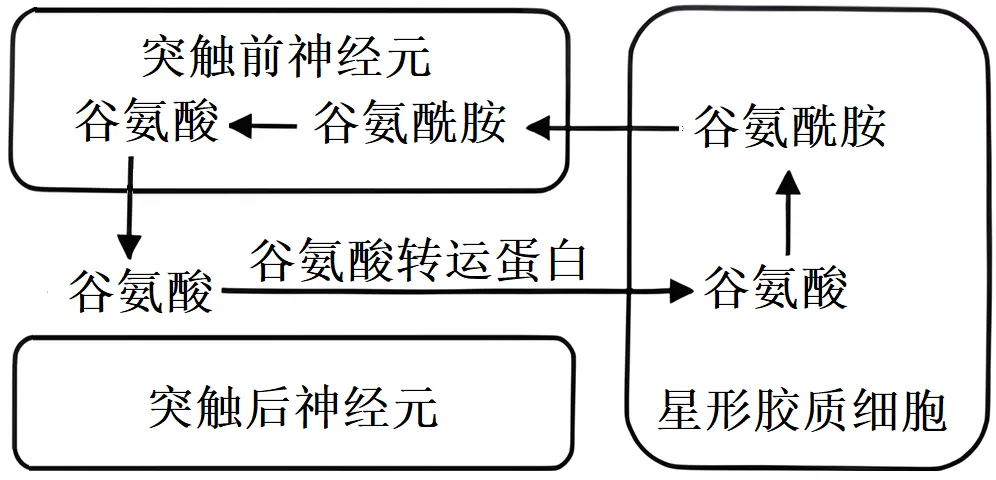 8. 谷氨酸是维持正常脑功能所必需的兴奋性神经递质,而癫痫病患者脑组织液中谷氨酸浓度显著升高。图为谷氨酸在神经组织细胞间的部分代谢过程,下列叙述不正确的是()