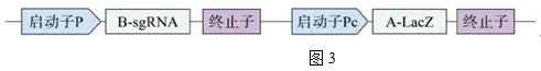 (3)硫代硫酸盐易被分解,因此Ec菌荧光情况的观察只能反映观察时刻的情况。为了让曾经患过IBD的情况被记录下来,科研人员继续向菌株Ec中导入含图3所示元件的表达载体,得到智能工程菌R。正常的LacZ基因编码的蛋白可使大肠杆菌菌落在含X-gal(无色)的培养基上呈现蓝色。突变基因A-LacZ无法表达LacZ酶,B-sgRNA能使突变基因A-LacZ恢复正常序列。
