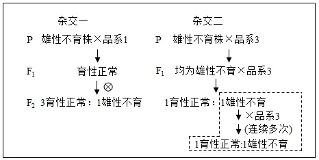 (1)油菜具有两性花,去雄是杂交的关键步骤,但人工去雄耗时费力,在生产上不具备可操作性。我国学者发现了油菜雄性不育突变株(雄蕊异常,肉眼可辨),利用该突变株进行的杂交实验如下: