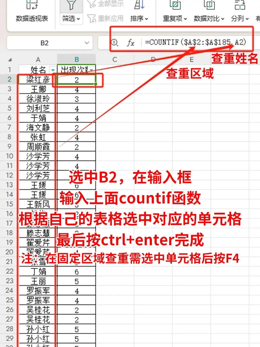 遇到重复数据怎么办?想要快速计算重复次数就用countif函数!