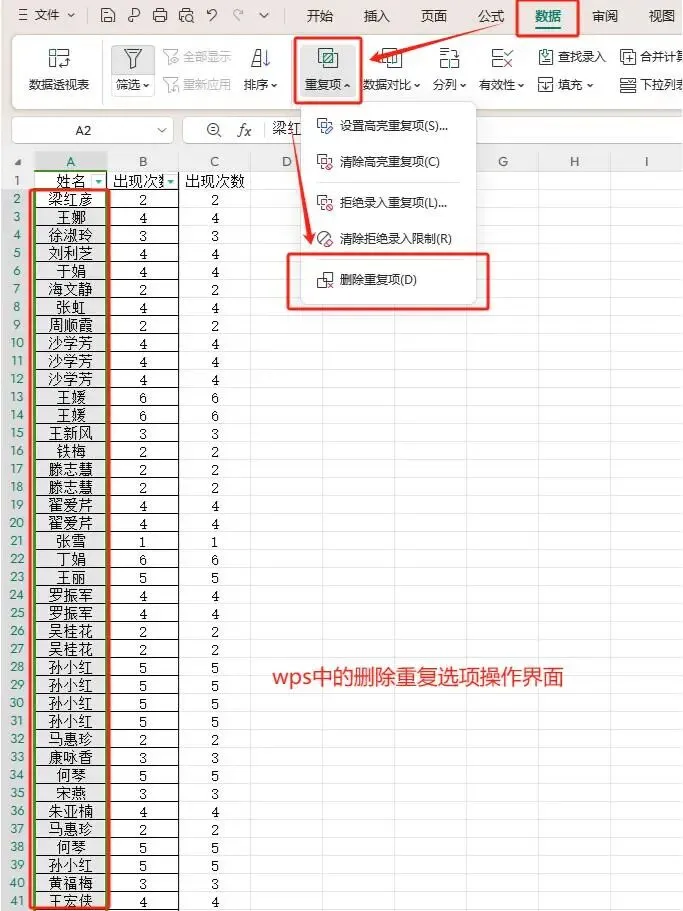 第3步:选择“删除重复项”,保持数据的清晰与准确。