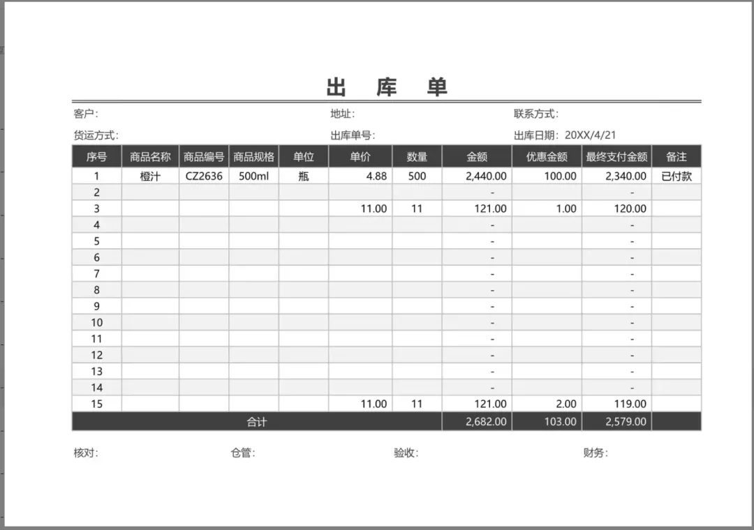 88款出入库单模板Excel(电子版可编辑)免费分享