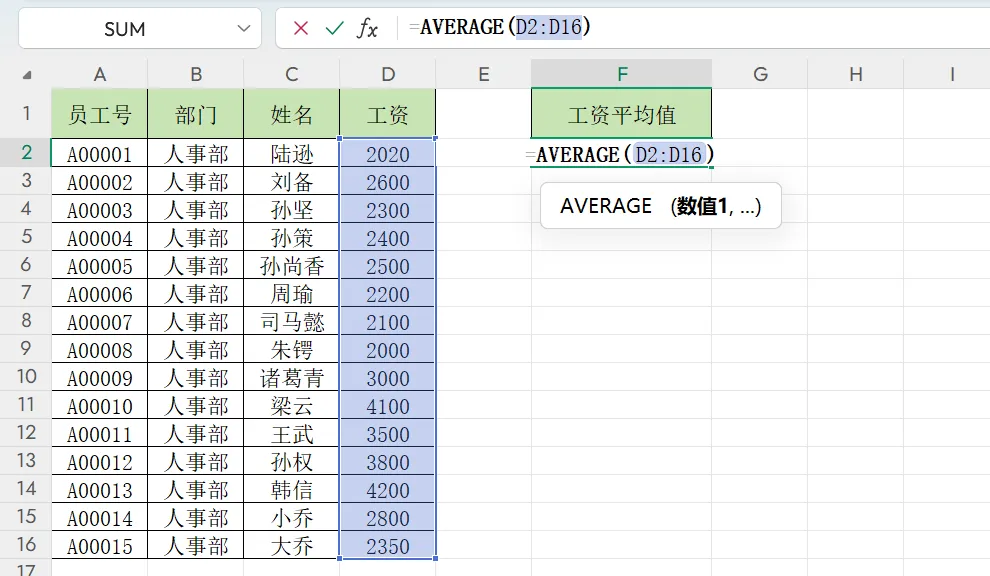 =AVERAGE(D2:D16)