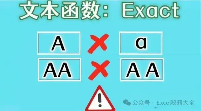 对于这么精准的表格核对,操作却非常简单。首先,咱们先来认识一个文本函数“EXACT”,它的作用就是为我们检测两个单元格中的内容,是否完全一致。值得注意的是:“EXACT”函数的检测标准非常严格,字母的大小写和空格都是检测的标准(图2)。