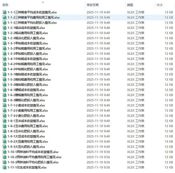 涵盖粮食、棉花、油料、糖料、肉类、蔬菜等50余种主要农产品,覆盖种植业、畜牧养殖业及地方特色农产品。