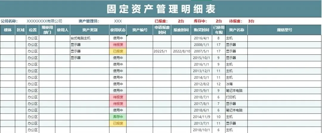 >【36款】固定资产明细表(Excel电子版下载)!