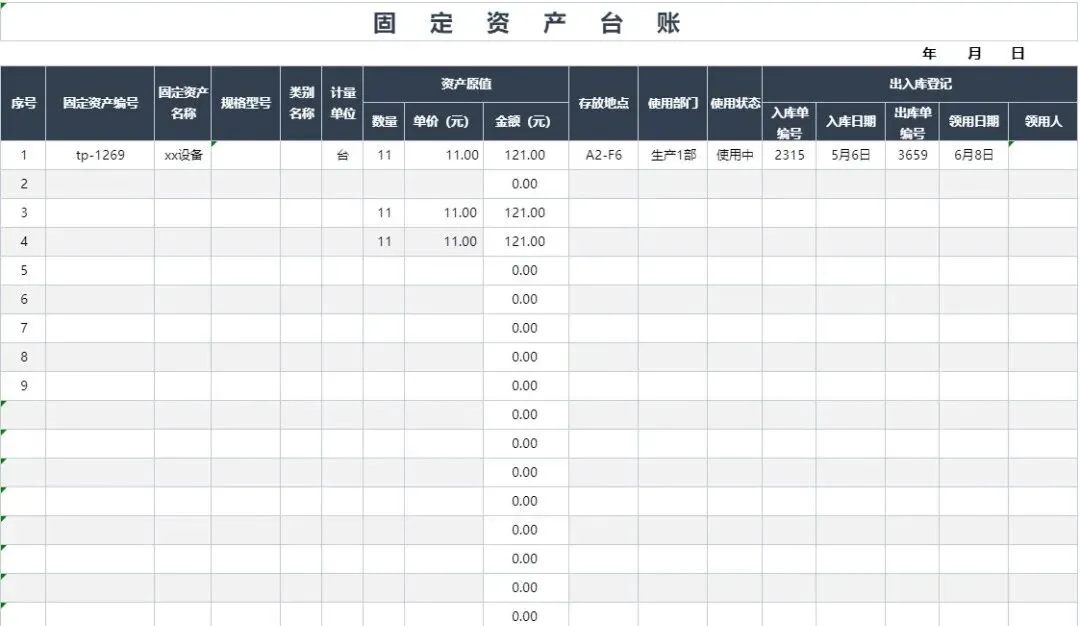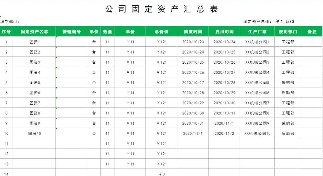【36款】固定资产明细表(Excel电子版下载)!