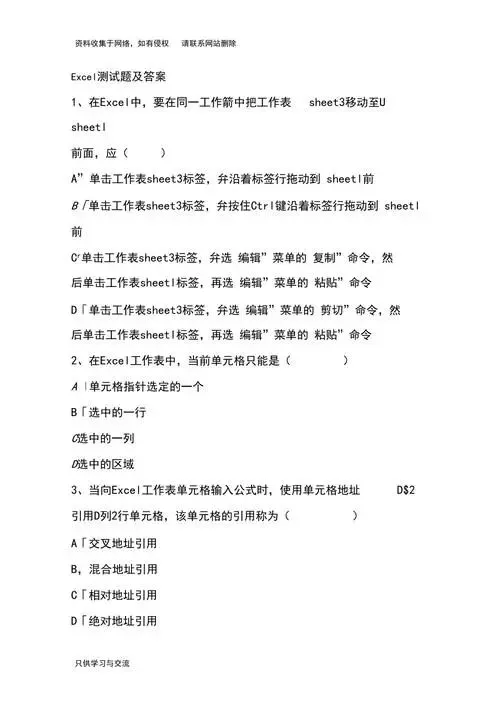 本文主要介绍了关于Excel电子表格的考试题及详细答案,旨在帮助读者更好地掌握Excel软件的应用技巧。通过对这些考试题的解析,读者可以加深对Excel功能的理解,提高操作的熟练度,从而更好地应对工作中需要使用Excel的情况。