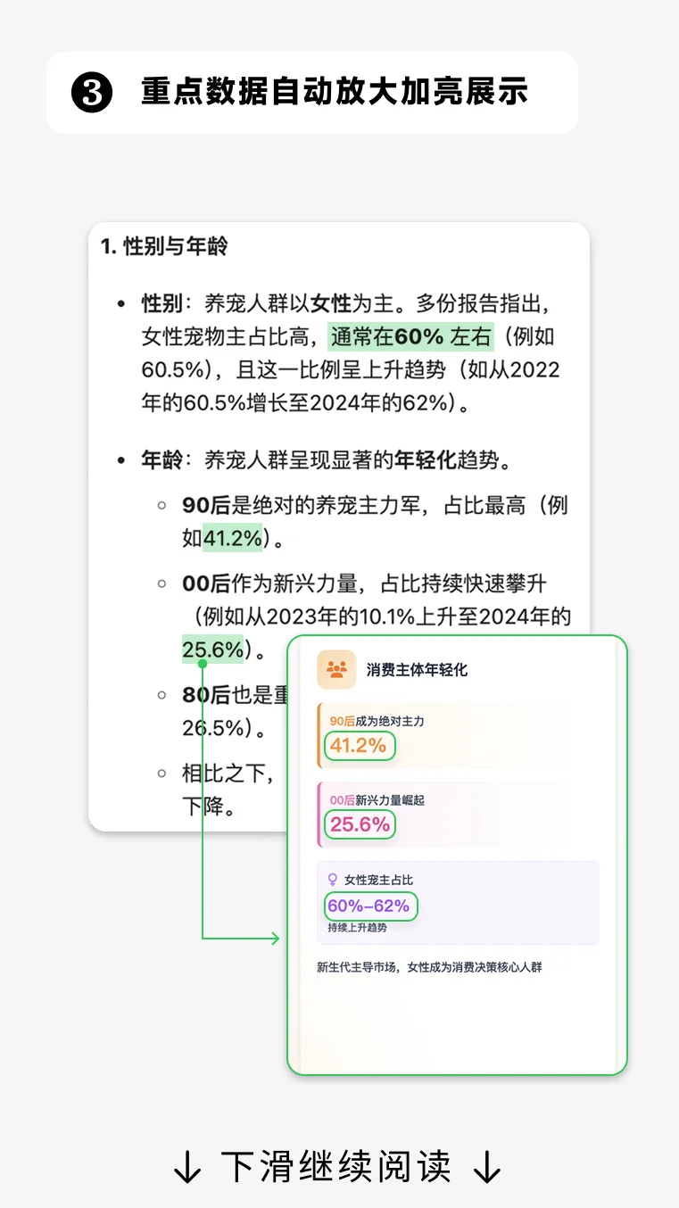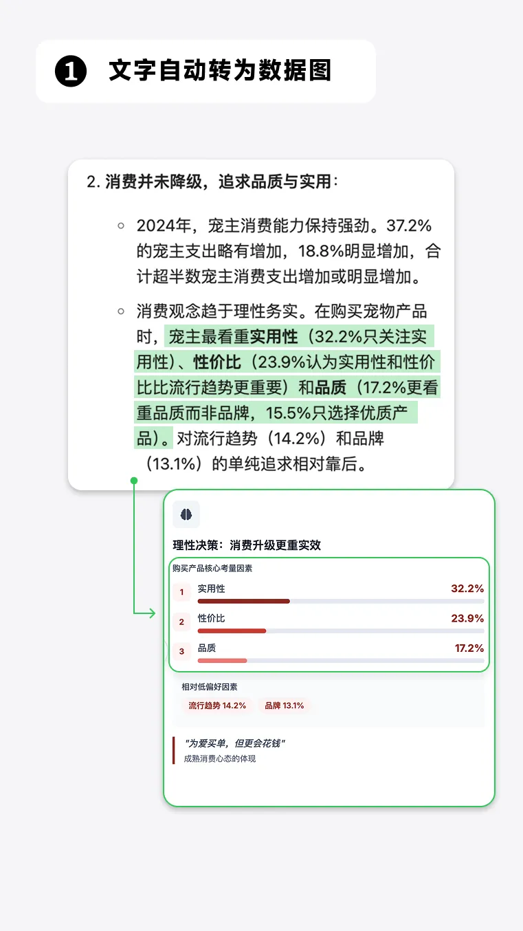 ima可以把你的资料:生成图表、配上图标、放大重点,就像这样⬇️