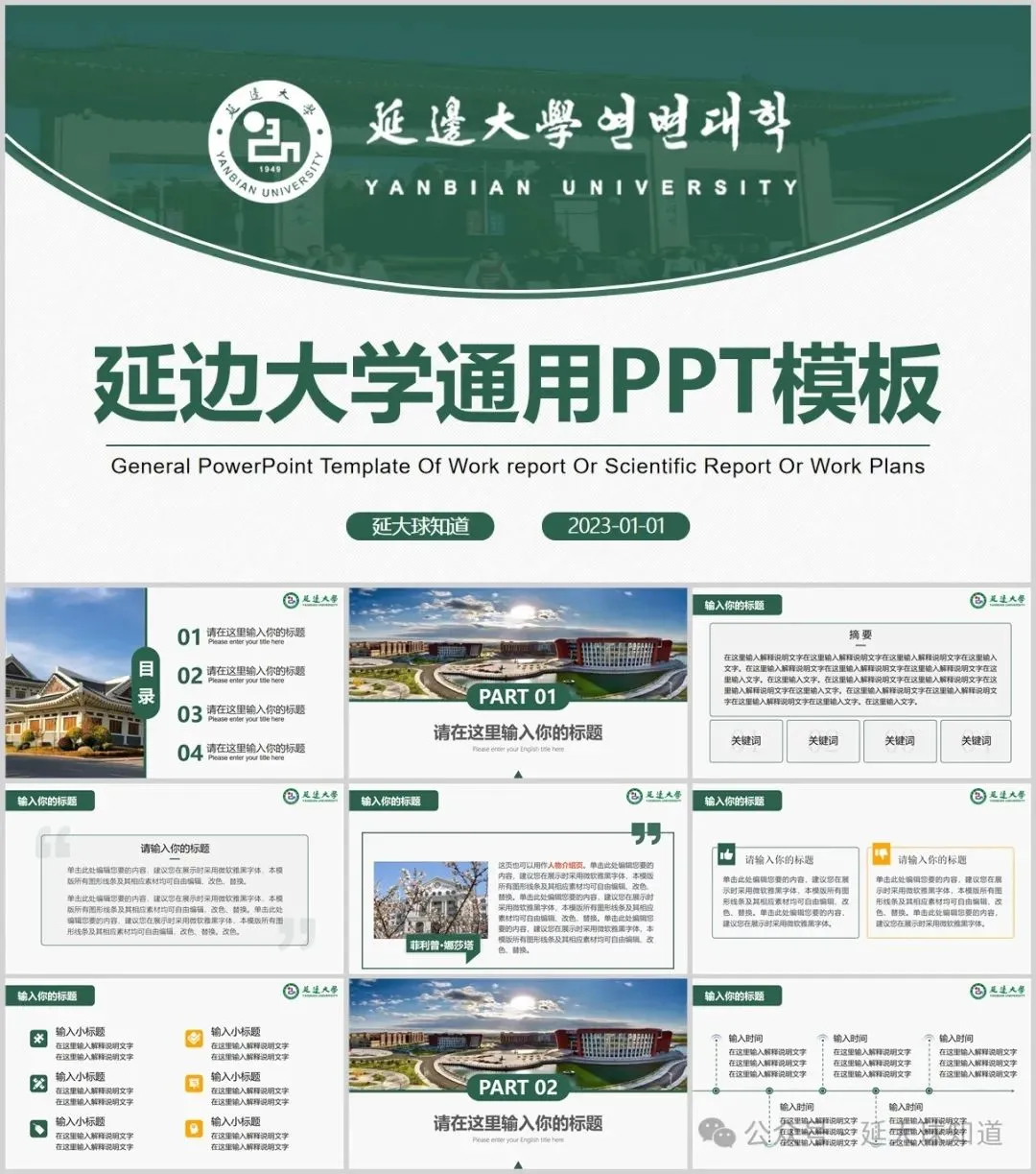 延边大学PPT模板来了~