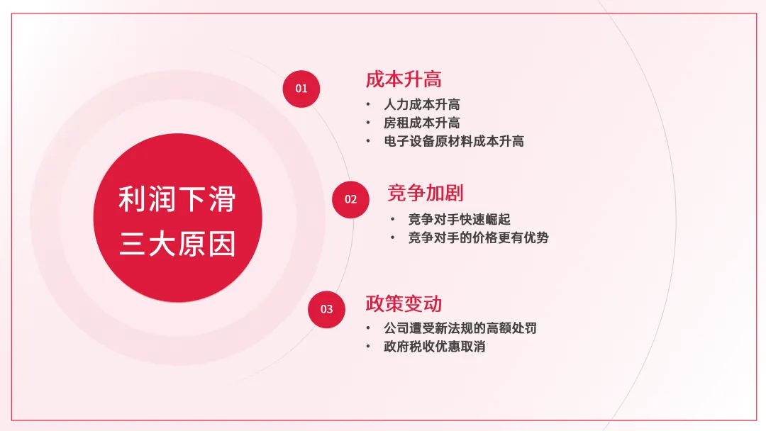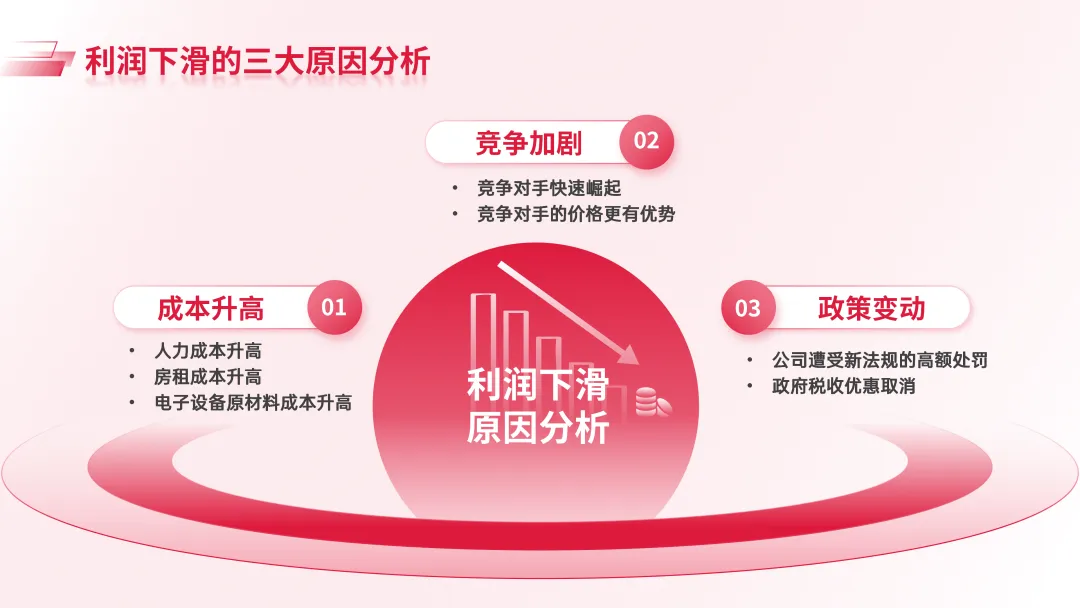 我们发现,利润下滑的7个原因,可以分为成本、政策、竞争三大类,这是分类,具体如图: