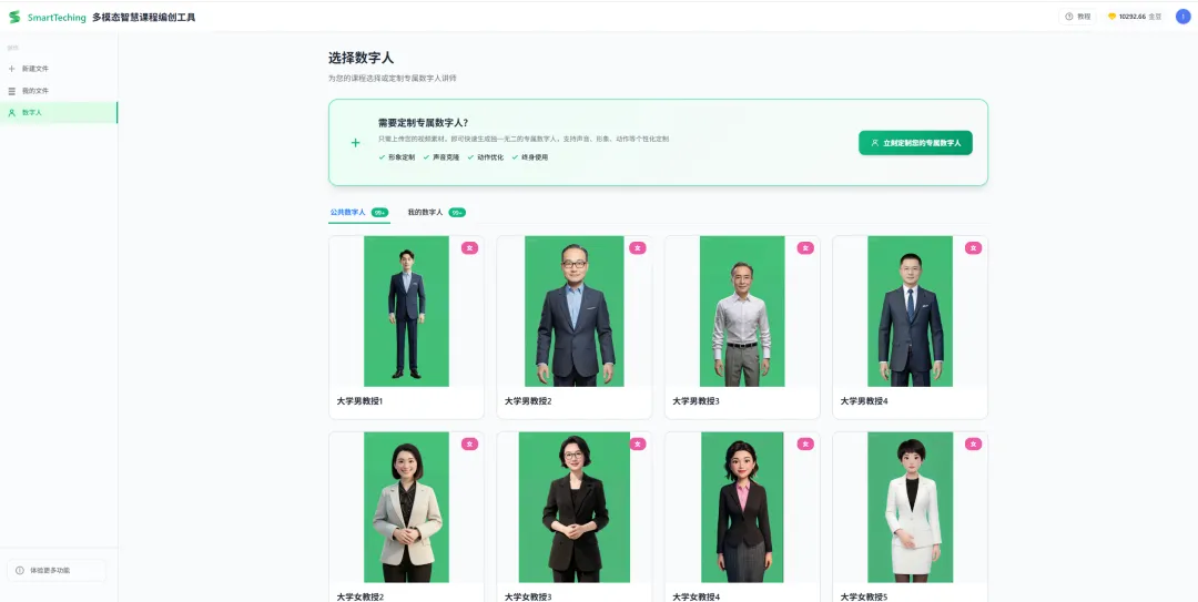 依托先进的数字人复刻技术,仅需上传真人教师的短视频(3-5分身)与音频素材,即可完成1:1形象、声纹及动作习惯的精准克隆,唇音同步精度达毫米级,表情与肢体动作自然流畅,完美复刻教师独特的教学风格与亲和力,彻底摆脱虚拟形象的机械感与疏离感。生成的数字人教师可实现多场景适配,既能保持严谨的学术讲解姿态,也能展现生动的互动表达,让微课呈现兼具专业性与感染力。