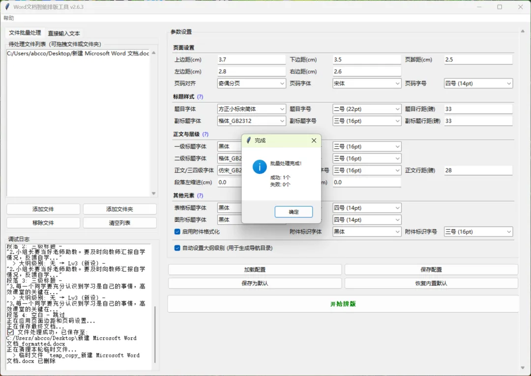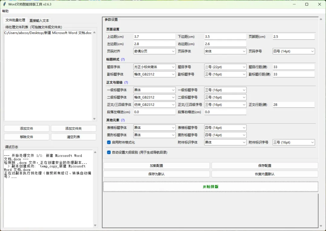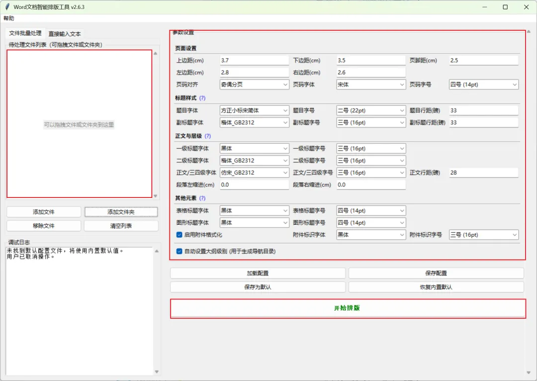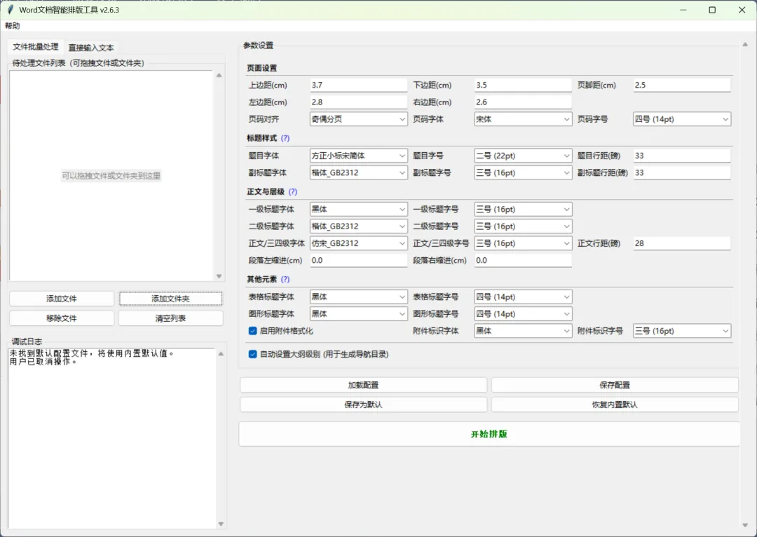软件界面简洁、操作便捷,支持页边距、标题、正文、页码、段落等多项参数的自定义设置。